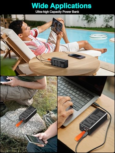 [70000mAh GROSSE POWERBANK] Unsere Powerstation mit hoher Kapazität bietet 70000mAh und kann Ihr Smartphone etwa 10-20 Mal aufladen, womit Sie über eine Woche lang ausreichend Strom haben. Perfekt für Camping, Reisen, Hurrikan Stromausfälle, Wandern, Angelurlaub, Geschäftsreisen und andere Outdoor Aktivitäten. • [5 AUSGÄNGE & 2 EINGÄNGE] Gleichzeitiges Laden von 5 Geräten, einfach zu bedienen und langlebig. 3 USB-A Ausgänge (30W), 2 USB-C Ausgänge (140W), 2 USB-C Eingänge, Kompatibel mit Smartphones, Tablets, Headsets, tragbaren Spielkonsolen, Mini Lautsprechern, Kameras und anderen USB Geräten. • [140W PD 3.1 & QC 4.0 SCHNELLLADEFUNKTION] Diese Hochleistungs Externer Akku unterstützt PD 3.1 und QC 4.0 mit 2 USB-C Ausgängen (140W) und 3 USB-A Ausgängen (30W). Sie lädt Ihr Telefon in nur 30 Minuten auf 60%, spart wertvolle Zeit und dient als Familien Ladestation – ideal bei Reisen oder Stromausfällen. Nur eine Powerbank deckt den Ladebedarf aller Familienmitglieder. Ein zuverlässiger Begleiter in Notfällen. • [FLEXIBLES TRAGEBAND & LED DISPLAY] Die Akku Pack Handy Ladegerät hat ein weiches Trageband für einfachen Transport in der Hand oder im Rucksack. Das integrierte LED-Display zeigt präzise den Reststrom in Prozent an, sodass Sie rechtzeitig nachladen können. • [KOMPAKTES DESIGN & GERINGES GEWICHT] Das tragbare Schnellladegerät mit LED Licht Maße 16,9×11×6,3 cm, Gewicht nur 0,92 kg. Trotz riesiger Kapazität haben wir das Gewicht durch Optimierung fast halbiert. Bei gleicher Größe wie vergleichbare Modelle bietet sie mehr Zuverlässigkeit und höhere Kapazität – ideal für Langzeitnutzung oder mehrere Benutzer. • [LANGZEIT GARANTIE] Bei Problemen kontaktieren Sie uns bitte umgehend. Hinweis: Bei aktiviertem Batterieschutz kann es vorkommen, dass die Powerbank nicht lädt oder nicht auf 100% auflädt. Lassen Sie sie in diesem Fall 2 Stunden weiter am Strom, um die automatische Reset Funktion zu aktivieren. Alternativ unterstützen wir Sie gerne per Kontaktformular.