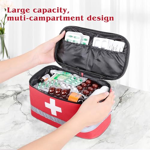 💊【Leicht & Große Kapazität】Medikamententasche groß: 25 x 20 x 13 cm; medikamententasche Klein: 11 x 14 x 2 cm. Leicht aber mit großer Kapazität, kann es Ihre unterschiedlichen Bedürfnisse erfüllen. Zahlreiche Innenfächer bieten ausreichend Platz für die Medikamentensortierung. • 💊【Langlebiges Material】Reiseapotheke tasche besteht aus hochwertigem, robustem Oxford-Stoff, der verschleißfest und langlebig, wasserdicht und feuchtigkeitsbeständig ist und das Arzneimittel vor Feuchtigkeit und Staub schützen kann. Das Innenfutter von reiseapotheke besteht aus Polyestergewebe, das eine glatte Textur hat und sich nicht leicht verformen lässt. • 💊【Doppelschichtiger Raum】Die doppelschichtige Struktur im Inneren des medikamententasche reise erhöht den Stauraum und bietet Platz für alle benötigten Medikamente. Der Innenraum ist ausreichend groß und sinnvoll aufgeteilt, sodass Gegenstände schnell gefunden werden können. • 💊【Sicherheitsdesign】Reiseapotheke tasche leer mit Zwei-Wege-Reißverschluss, glatt und leicht zu öffnen und zu schließen. Der Reißverschluss verhindert, dass das Medikament nass wird und herunterfällt. Das Griffdesign ist einfach zu tragen, effizient und bequem. • 💊【Breite Anwendung】Tasche reiseapotheke kann gestapelt und platzsparend aufbewahrt werden, und das Erscheinungsbild ist für einen einfachen Zugriff deutlich gekennzeichnet. Geeignet für Zuhause, Camping, Büro, Reisen, Schule, Outdoor-Sport usw.