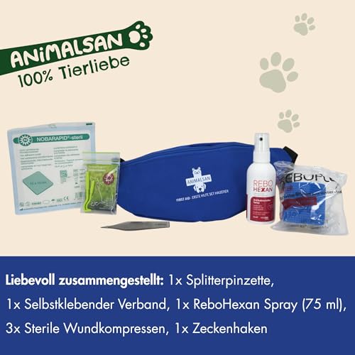🩹 Soforthilfe für kleine Verletzungen: Alles Wichtige für Notfälle – von Wundspray über sterile Kompressen bis zur Pinzette. Ideal für Hunde, Katzen und Welpen, um kleine Verletzungen schnell und hygienisch zu versorgen. • 🎒 Kompakte Tierapotheke für unterwegs: Das handliche Erste-Hilfe-Set ist perfekt für Spaziergänge, Reisen und Ausflüge. Mit Verbandmaterial, Zeckenhaken und Wunddesinfektionsspray – alles griffbereit in der praktischen Bauchtasche. • 🧴 Sanfte Pflege ohne Stress: Das enthaltene Desinfektionsmittel für Hundewunden ist hautfreundlich und leicht anzuwenden. Unterstützt eine schnelle Reinigung von kleinen Kratzern, Schürfwunden und Pfotenverletzungen. • 💙 Vielseitig einsetzbar: Ob Zeckenzange, Splitterpinzette oder Pfotenverband – das Set ist ideal ausgestattet für zu Hause und unterwegs. Perfekt als Ergänzung zur Reiseapotheke oder Haustierapotheke. • 🌲 Liebevoll zusammengestellt: Qualitätsprodukte für deine Fellnase – sorgfältig ausgewählt für Sicherheit und Wohlbefinden. Praktisch, handlich, immer bereit: das Animalsan Erste-Hilfe-Set für deinen vierbeinigen Begleiter.