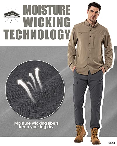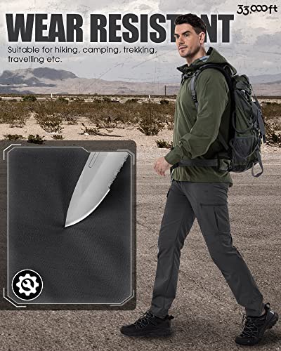 【Hautfreundlich und weich】 Diese wasserdichte hose für herren besteht aus elastischen und atmungsaktiven Materialien, ist auf vier Arten perfekt gedehnt, knitterarm und keine Verformung, weiche Textur, langlebige und starke Nähte machen die Hose ausreichend reißfest, bequem und atmungsaktiv tragen • 【Wind und Wasserdicht】 Die Oberfläche der trekking herren hose ist wasser und schmutzabweisend und hält die Hose bei leichtem Regen trocken und sauber. Diese trainingshose herren wird mit UV Sonnenschutz UPF 50 geliefert, der UVA und UVB Strahlen blockieren kann, um Sonnenbrand und langfristige Hautschäden zu verhindern • 【Praktische Funktion】Die leichte Cargohose Herren hat eine bequeme, teilweise elastische Taille, die die Knöchel straffen kann, um Ihre Beine vor schlechtem Wetter zu schützen. Wenn es heiß wird oder Sie den Fluss überqueren, können Sie die Länge Ihrer Beine von den Knöcheln aus anpassen • 【6 Mehrzwecktaschen】Männer arbeitshose für verschiedene Werkzeuge und Ausrüstung: 2 seitliche Eingrifftaschen und 2 Gesäßtaschen, 1 rechte Oberschenkeltasche mit Klettverschluss, 1 linke Oberschenkeltasche mit Reißverschluss für ultimativen Komfort und Sicherheit für die Arbeit • 【Allwetterhose】Diese Outdoor hose für männer verfügt über ein verstärktes, vorgeformtes Kniedesign und eine 3D Schnittform, die es Ihren Knien ermöglicht, sich bequem und flexibel zu beugen. Das gerade Design verändert Ihre Beinform, es ist stark und warm und eignet sich das ganze Jahr über zum Wandern und Trekking.