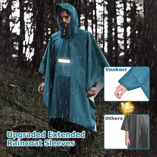 Wasserdichter Regenponcho: Dieser Regenponcho besteht aus robustem 210T-Polyester mit PU-Beschichtung und bietet eine Wassersäule von 5000 mm. Alle Nähte sind mit wasserdichten Streifen versiegelt, um das Eindringen von Wasser zu verhindern. Der Poncho trocknet schnell und hält auch bei längerem Regen angenehm trocken. Die breite Krempe schützt effektiv das Gesicht. • Praktisch & Langlebig: Eine praktische Brusttasche mit Klettverschluss schützt wichtige Gegenstände vor Nässe. Reflektierende Streifen vorne und hinten erhöhen Ihre Sichtbarkeit bei Dunkelheit. Dank des verstellbaren Kordelzugs an der Kapuze lässt sich der Poncho Regen individuell anpassen. • Atmungsaktiv & Bequem: Die weiten Armöffnungen und der lockere Schnitt unten sorgen für angenehme Luftzirkulation – perfekt für längere Touren. Mit 105 cm Länge und 140 cm Breite bietet dieser Regenponcho für Herren und Damen genug Platz für einen Rucksack und maximale Bewegungsfreiheit. • Leicht & Kompakt: Trotz vollständiger Abdeckung lässt sich der Poncho auf kompakte 23 × 12 cm falten. Perfekt für Rucksack, Auto oder Büro – so sind Sie bei plötzlichem Wetterwechsel stets vorbereitet. Ein idealer Regenponcho Wandern für unterwegs. • Multifunktional: Ausgestattet mit Ösen am Saum kann der Poncho als Plane oder Zeltunterlage genutzt werden. Seitliche Druckknöpfe ermöglichen den Einsatz als Schlafsackabdeckung. Dieser wasserdichte Regenponcho für Herren und Damen ist ein Muss für Outdoor-Aktivitäten wie Wandern, Camping oder Radfahren.