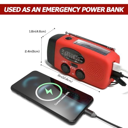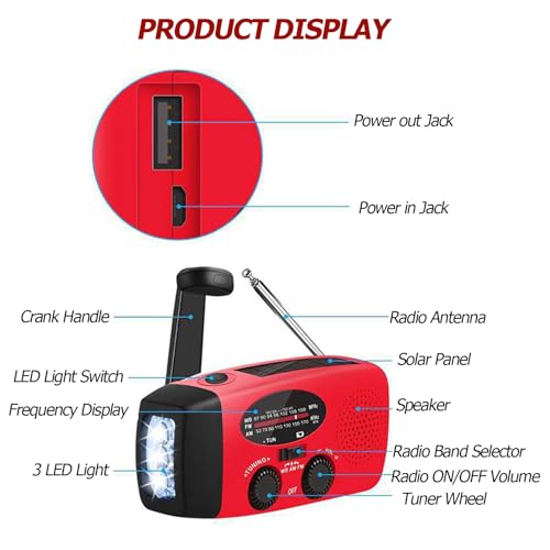 OFM/AM Notfallradio Mehrbandempfänger: Dieses kurbelradio notfall weltempfänger ist mit einer 360 Grad Teleskopantenne und hoher Empfindlichkeit in jedem Band ausgestattet. 40-mm-8Q1W-Lautsprecher, laute und klare Lautstärke; elektronischer Sendersuchlauf, einfache Bedienung, lange Schalterlebensdauer • Notfall Powerbank: Dieses kurbel radio kann auch bei Stromausfall per Hand oder Solarenergie betrieben werden, sodass Sie Ihr stromsparendes Mobiltelefon im Freien aufladen können • LED Licht: Das LED Licht dieses solarradio verfügt über 3 LED Lampenperlen, die in dunklen Umgebungen für Helligkeit sorgen können. • Mehrere Stromversorgungsmethoden: Dieses solar radio mit kurbel kann über Solarmodule, einen eingebauten 2000-mAh-Polymer Lithium Akku, einen handgekurbelten Generator und einen externen DC5V-Micro-USB-Ladeanschluss mit Strom versorgt werden • Wasserdicht und tragbar: Dieses kurbelradio notfall ist klein und kann überallhin mitgenommen werden, sogar in der Tasche; aus ABS-Kunststoff, IP3 wasserdicht und mit Gummiöl besprüht, ist es schmutzabweisend und verschleißfest; Kontrollleuchte: Beim Einstellen von Kanälen und beim Laden gibt es entsprechende Kontrollleuchten, die Ihnen klare Hinweise geben.