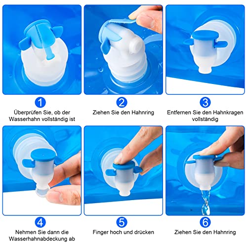Wasserkanister Faltbar 5L – Große Kapazität. Der Tragbar Faltkanister kann bis zu 5L Wasser aufnehmen. Er kann auch mit Flüssigkeiten wie Bier, Getränken, Fruchtsäften usw. gefüllt werden • Sicher und Gesundheit – Der Faltbarer Wasserbehälter besteht aus sicherem PE-Material, ist ungiftig, Sicher und Lebensmittelqualität,enthält kein BPA frei. Sie müssen sich keine Sorgen um gesundheitliche Probleme machen. Der Wassersack ist für Temperaturen zwischen -30° und +60° geeignet • Wiederverwendbare – Der trinkwasserkanister ist transparent und weich, leckt nicht und der ermöglicht Ihnen die Wiederverwendung.Zu dreivierteln gefüllt kann die Flüssigkeit auch eingefroren als Kühlkompresse verwendet werden. 3,5 cm Wasserzulauf, einfaches Befüllen und Ausgießen, befüllbar mit Trinkwasser und Eiswürfel • Wasserkanister Faltbar – Der Wassertank ist sehr leicht und kann platzsparend zusammengeklappt werden. Jeder wiegt nur 0,070 kg, was bequem zu tragen ist.Geeignet für Grillen im Freien, Camping und Brauchwasser.Darüber hinaus kann der wassersack camping es bei Katastrophen oder Notfällen eine große Menge Wasser für Sie speichern und Ihren Bedarf an Wasserspeicherung decken • Der ergonomische Griff sorgt für Tragekomfort und erleichtert das Ausgießen