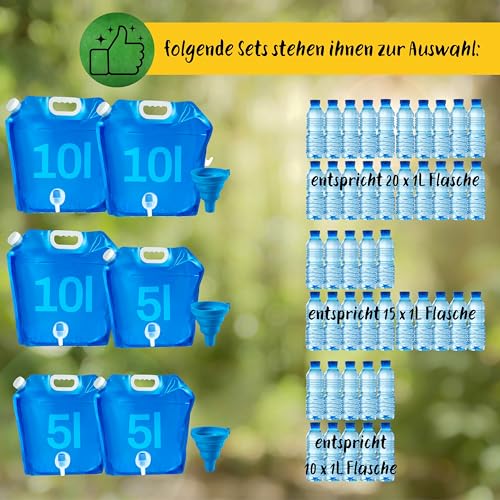 | 🎯Use Case | Vielseitige Wasseraufbewahrung für Camping, Notvorrat und Outdoor-Aktivitäten; flexibel faltbar und transportabel. |