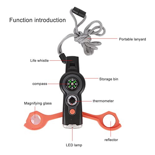 FLACHSPIEGEL UND LED-LICHT: Selbst bei körperlicher Erschöpfung können Sie die reflektierende Eigenschaft des Planspiegels nutzen, um das Sonnenlicht an andere Personen in einiger Entfernung zu reflektieren und so ein Notmodell zu senden. Eingebautes Netzteil, LED-Licht kann die kurzfristige Nachtbeleuchtungsfunktion lösen. • KOMPASS: Ein notwendiges Werkzeug, um die Richtung von Outdoor-Waldabenteuern zu erkennen. • THERMOMETER: Ermitteln Sie die Umgebungstemperatur und wählen Sie die richtige Reisezeit. • KONVEX LNES: Wenn Sie ein Feuer brauchen, nutzen Sie die Lichtsammelfunktion des konvexen Spiegels, um das brennbare Material zu entzünden und so den Brandherd zu finden. • ANWENDUNGSSZENARIO: Outdoor-Abenteuer müssen über Überlebenswerkzeuge zur Selbstrettung verfügen, die für den Sportunterricht auf dem Campus, die Feuerwehrausbildung, Outdoor-Abenteuer-Abenteuerklettern, Camping und andere potenziell lebensbedrohliche Szenarien anwendbar sind.