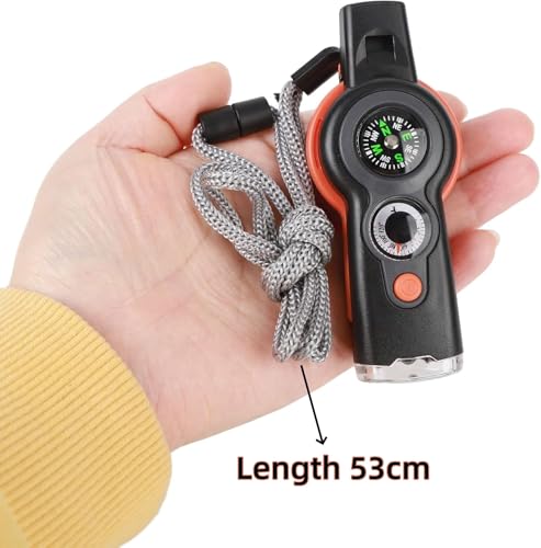| ✨Benefits | Signalisieren aus Distanz, Orientierung und Temperaturmessung, Nachtbeleuchtung sowie Feuerhilfe durch den Spiegel. |