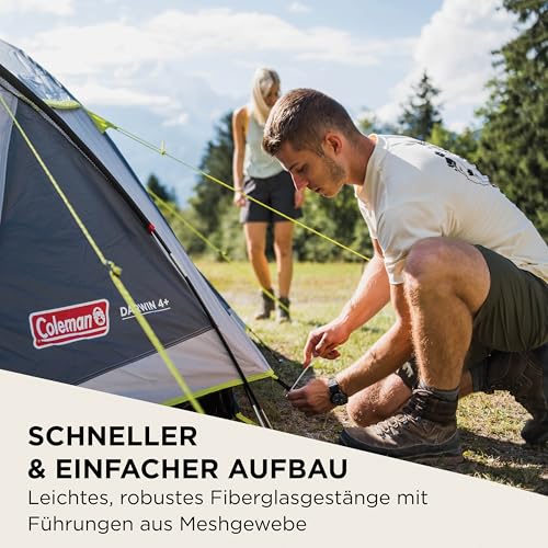 Das DARWIN 3+ ist ein kompaktes Kuppelzelt mit Frontbereich für Ausflüge bei dem es auf Gewicht und Volumen ankommt. Gesamtfläche 5,6 qm • Das Innenzelt ist atmungsaktiv, schwer entflammbar und mit einem blickdichtem Moskitonetz versehen • Die 3 Gestängebögen bestehen aus Fiberglas (Ø 8,5 mm) und sind durch ein Stecksystem einfach zu verwenden • Mit UV Schutz 50+ für besseren Schutz vor UV-Strahlung und Materialverschleiß. Fenster im Stauraum aus klarem PVC • Innenabmessungen Schlafbereich (LxBxH): 210 x 180 x 120 cm. Stauraum (LxBxH): 110 x 200 x 115 cm
