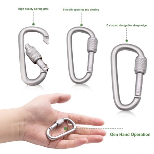 | ✨Benefits | 10 leichte Aluminium-D-Karabiner, je ca. 9 g, kompakt und stabil; Schraubverschluss sorgt für Sicherheit; bunt, vielseitig einsetzbar am Rucksack, Schlafsäcken und Zelt. |